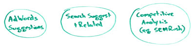 First off, we're going to conduct a broad keyword research dive into each one of these. Not as much as we would do if we knew, hey, Chow fun is the one we're going to target. We're going to go deep. We're going to find every possible keyword. We're going to do kind of what I call a broad dive, not a deep dive into each market. So I might want to go, hey, I'm going to look at the AdWords suggestions and tally those up. I'm going to look at search suggest and related searches for some of the queries that I get from AdWords, some of the top ones anyway, and I'm going to do a brief competitive analysis. Maybe I'll put the domains that I'm seeing most frequently around these specific topics into SEMrush or another tool like that -- SpyFu, Key Compete or whatever your preference might be -- and see what other terms and phrases they might be ranking on.