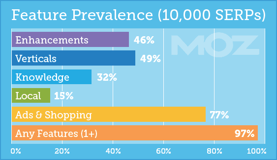 If your focus is on organic SEO, why should you care about the wider world of Google features? Put simply, because rich SERP features are no longer the exception to the rule. Across 10,000 keywords tracked daily by the MozCast project, this is what we saw as of September 1, 2015:
