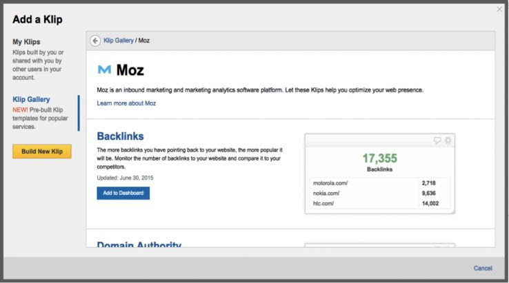 11. Adding in other data sources like Hubspot, Searchmetrics, or Google Analytics simply requires you to bet set up with those parties and to allow Klipfolio access.