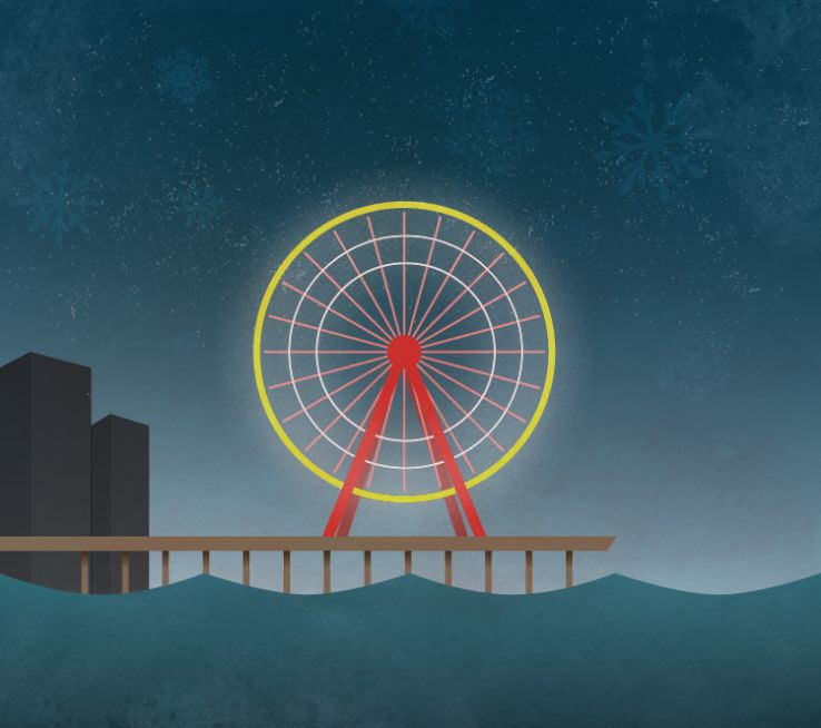 The colorful Great Wheel spun slow on the pier,